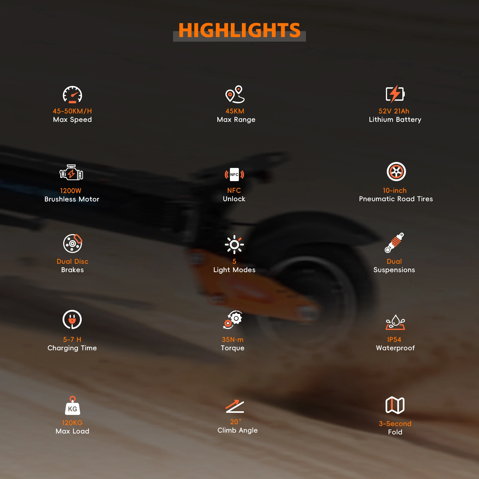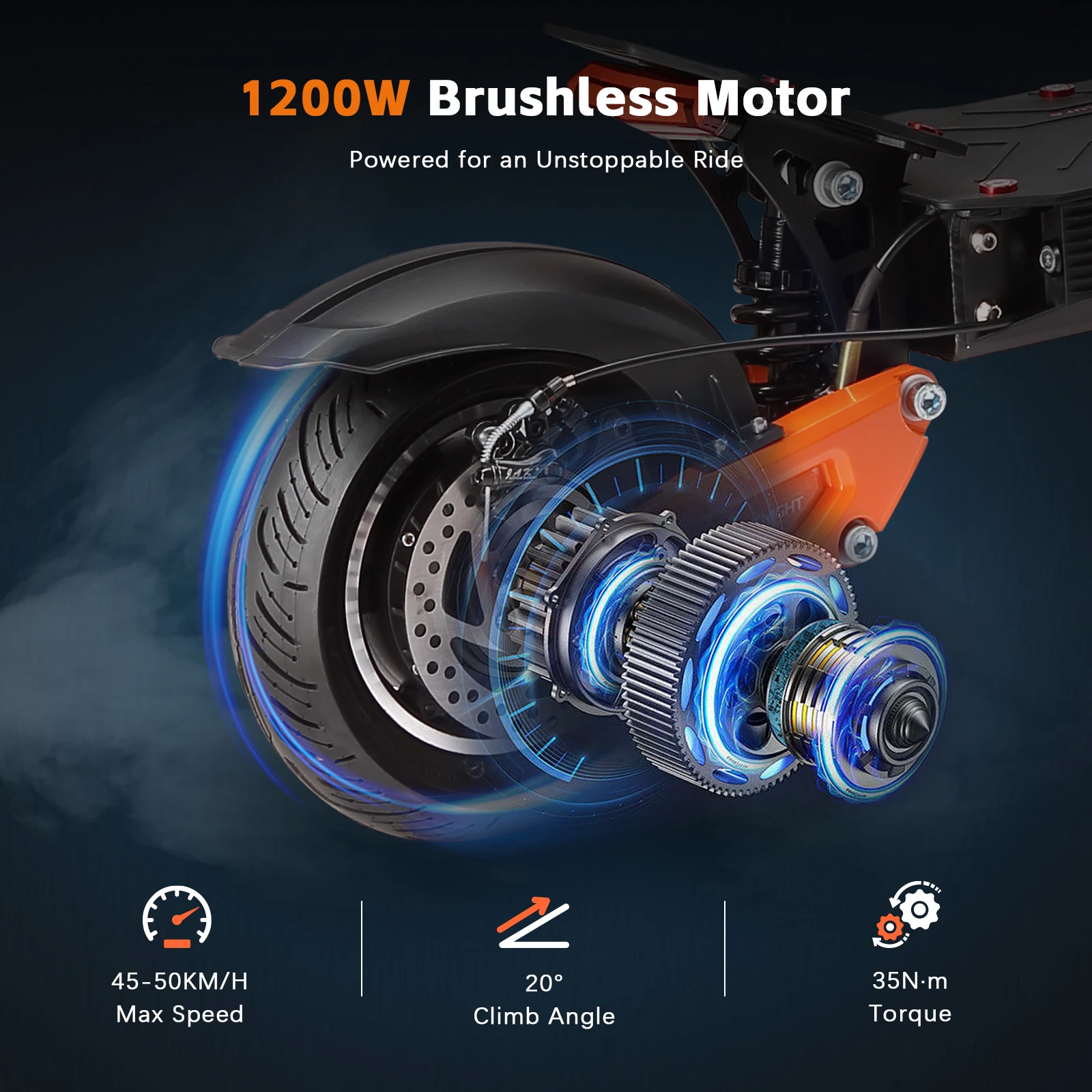 1. 1200W Powerful Motor: Reach speeds up to 50km/h for fast, exciting rides and effortless hill climbing.